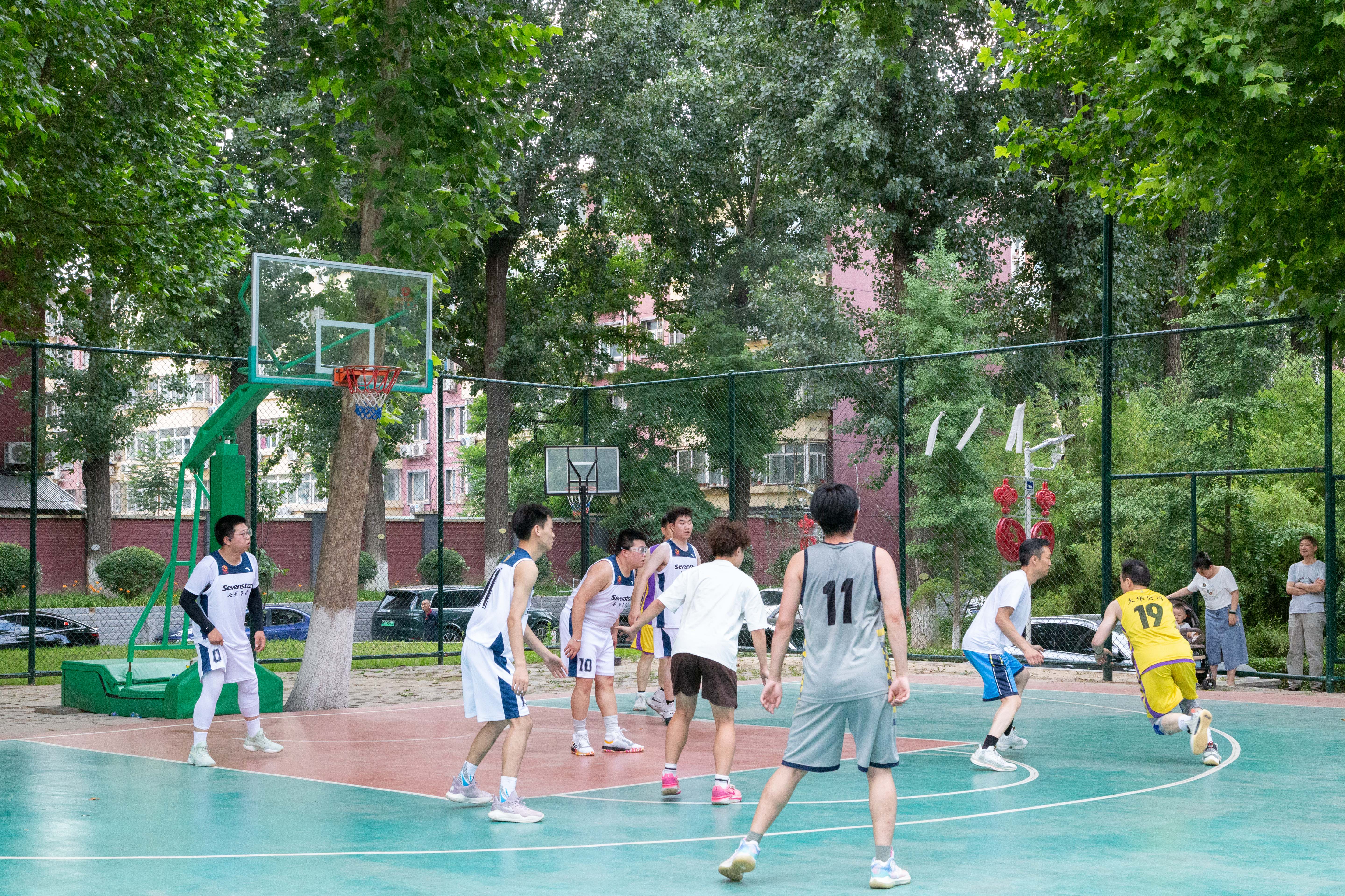 6月14日下午,大華公司與七星集團(tuán)在768園區(qū)籃球場(chǎng)舉行了一場(chǎng)別開生面的籃球友誼賽。這是七星集團(tuán)所持七九七音響股權(quán)委托大華公司管理之后,雙方進(jìn)行的第一場(chǎng)籃球友誼賽。