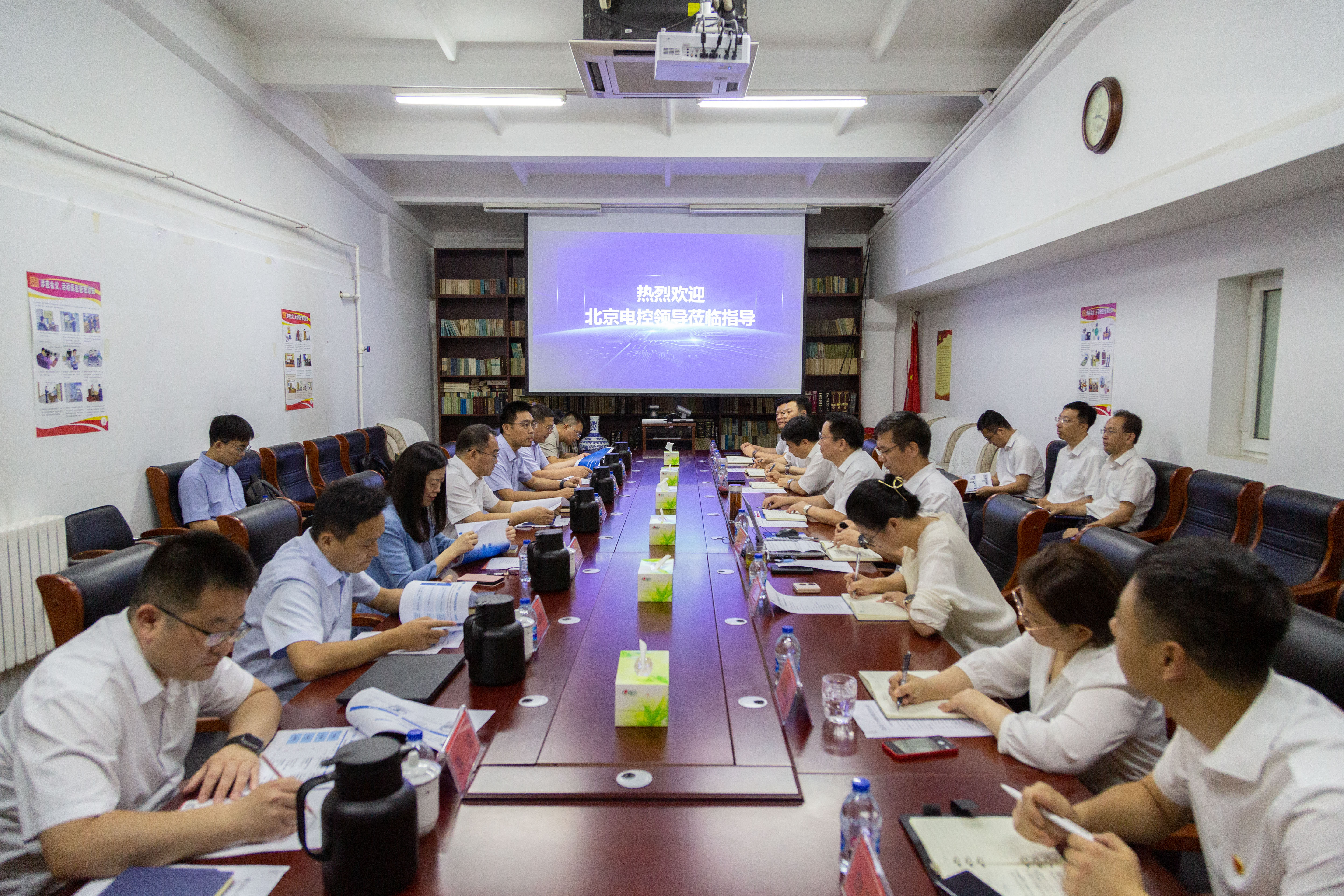 大華公司黨委書記、董事長董永生代表公司歡迎北京電控領(lǐng)導(dǎo)一行蒞臨指導(dǎo)。黨委副書記、總經(jīng)理?xiàng)钣略敿?xì)匯報(bào)了大華公司“十四五”規(guī)劃評估和落實(shí)情況,并對“十五五”規(guī)劃進(jìn)行展望,同時(shí)匯報(bào)了對七九七音響托管工作的進(jìn)展。
