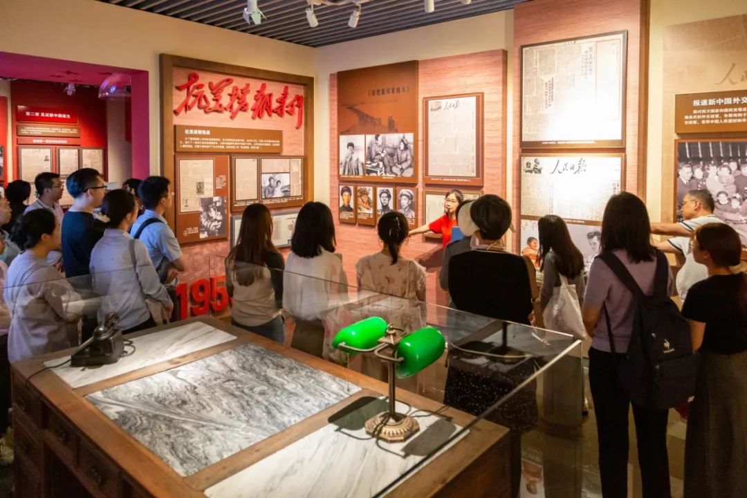 隨后,大家來到了人民日報社史館。社史館由序廳、中共中央機關(guān)報的歷史沿革、解放前夕的人民日報、記錄中華民族站起來的奮斗歷程、見證中華民族富起來的偉大實踐、書寫中華民族強起來的恢弘篇章等六個展廳構(gòu)成,忠實記錄了人民日報在炮火中誕生,在硝煙中成長,經(jīng)歷一個由小到大、由弱到強、由地方性報紙到全國性大黨報的艱苦創(chuàng)業(yè)、忘我奉獻與輝煌發(fā)展史,特殊的奮斗歷程包含著黨中央的正確決策,也展示人民日報面向未來發(fā)展的憧憬與夢想。